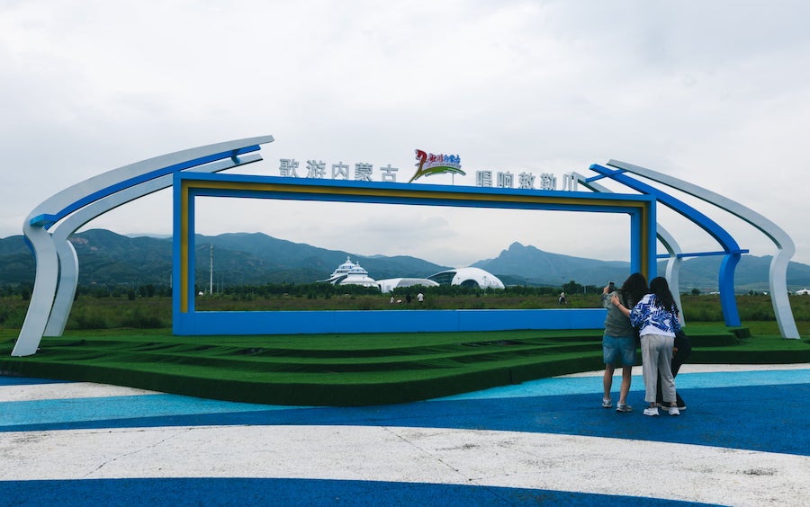 8月12日,呼和浩特敕勒川草原煙雨蒙蒙,吸引游客前來觀光游玩。北疆新聞 林則志 攝影