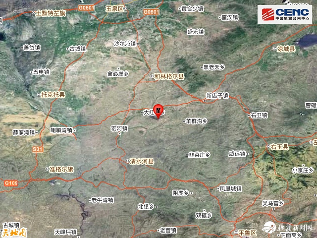 震中距和林格爾縣27公里、距清水河縣29公里、距山西右玉縣55公里、距托克托縣58公里、距準(zhǔn)格爾旗60公里,距呼和浩特市76公里。