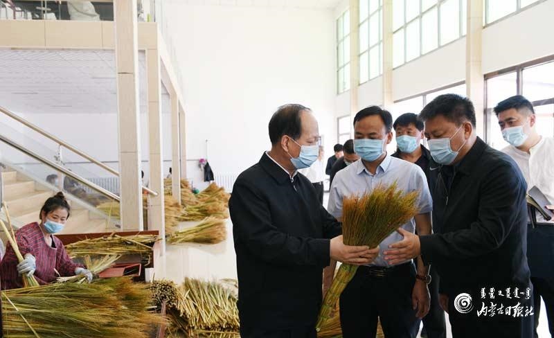 6月2日,自治區(qū)黨委書記、人大常委會主任石泰峰在赤峰市巴林左旗十三敖包鎮(zhèn)洞山村豐華笤帚制品有限公司,調(diào)研生產(chǎn)經(jīng)營和帶貧致富情況。內(nèi)蒙古日報社融媒體記者袁永紅攝