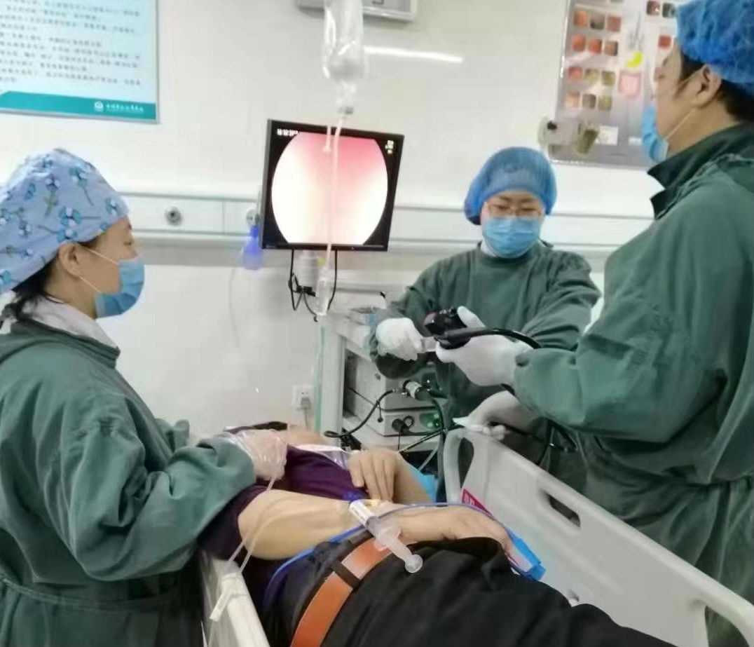 麻醉科王虹和腔鏡室王一平大夫安娜護士進行無痛胃鏡檢查