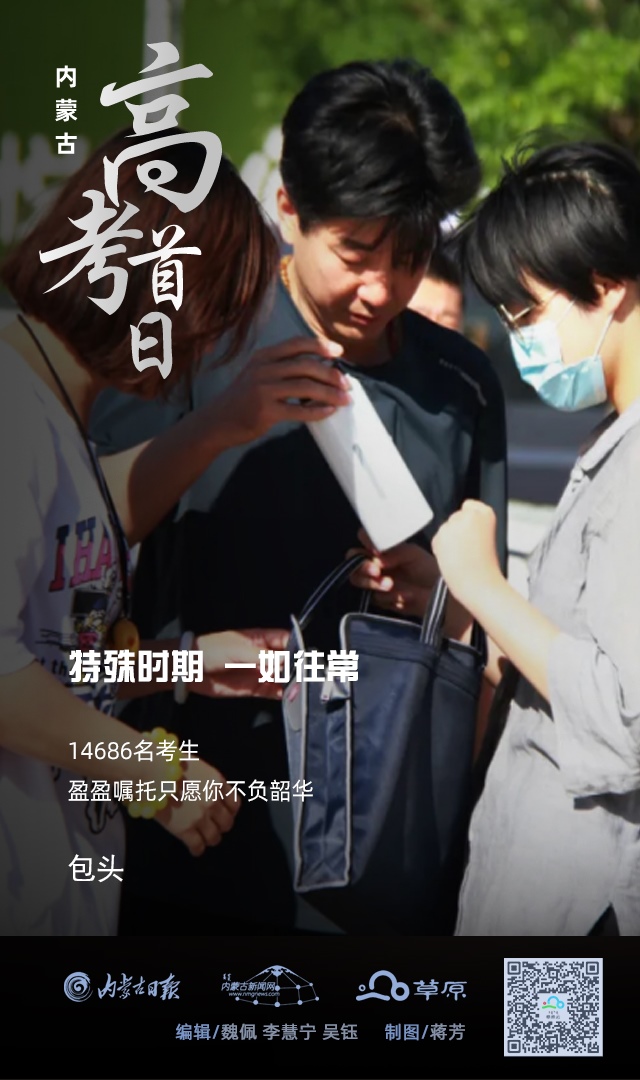 今年,我區(qū)高考報名總?cè)藬?shù)197901人,其中參加全國統(tǒng)一考試163812人。全區(qū)共設(shè)105個考區(qū)、184個考點、5786個考場。內(nèi)蒙古各盟市全力做好防護與保障工作,高考首日,一如往常。