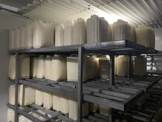圖為照富經(jīng)貿(mào)有限責任公司的冷庫,一桶桶從牧戶家收集來的馬奶被整齊排列。