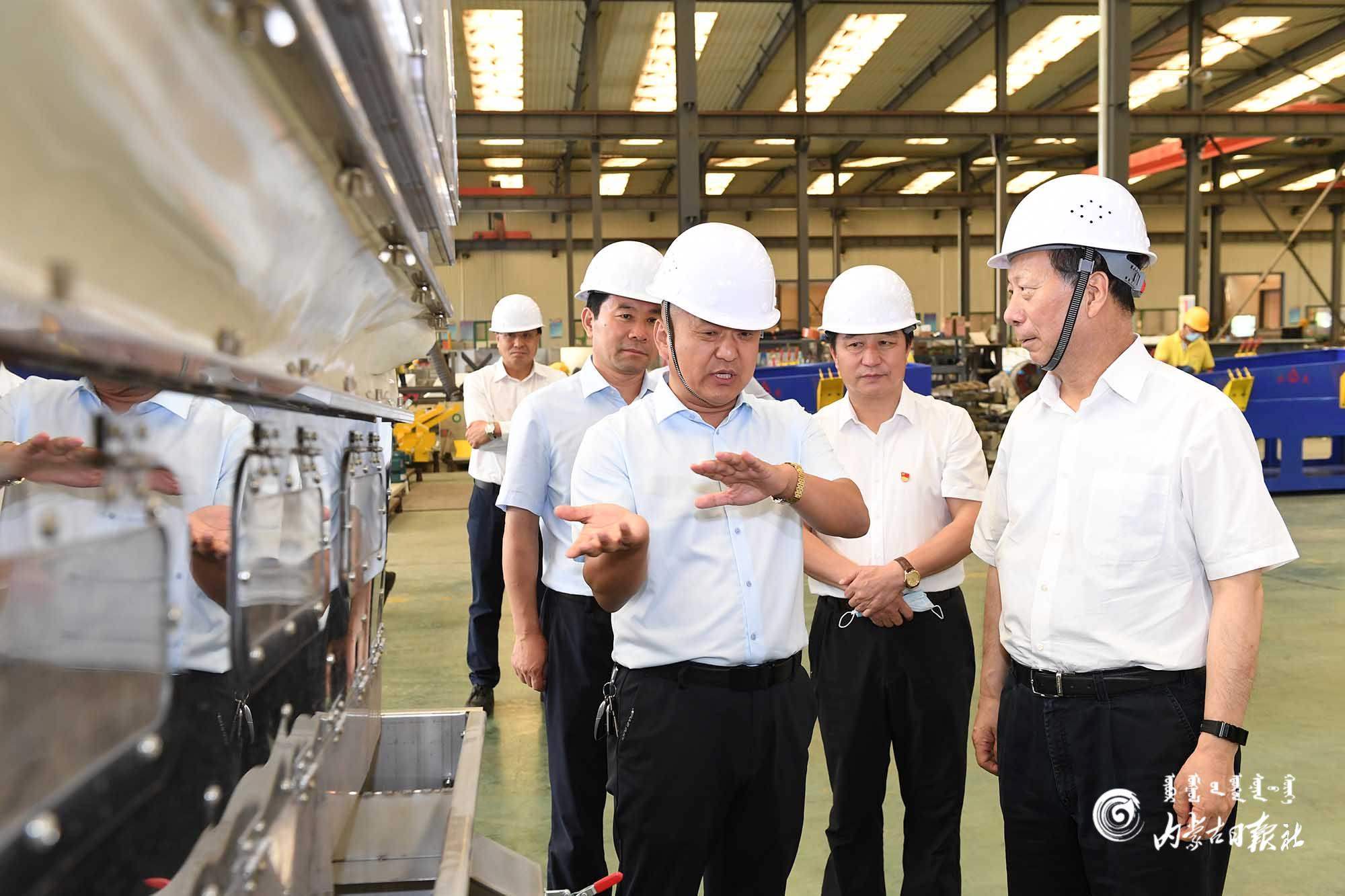8月18日,自治區(qū)黨委書(shū)記、人大常委會(huì)主任石泰峰來(lái)到巴彥淖爾市五原縣金麥提升農(nóng)機(jī)裝備制造公司,走進(jìn)生產(chǎn)車間了解項(xiàng)目建設(shè)運(yùn)營(yíng)情況。內(nèi)蒙古日?qǐng)?bào)記者 袁永紅 攝