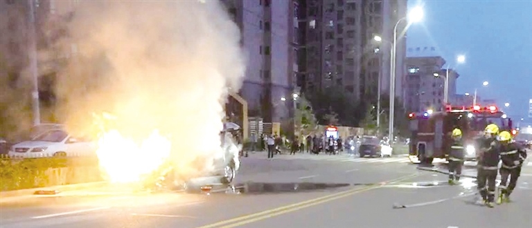 消防員迅速趕到現(xiàn)場滅火 攝影/記者 周蕾