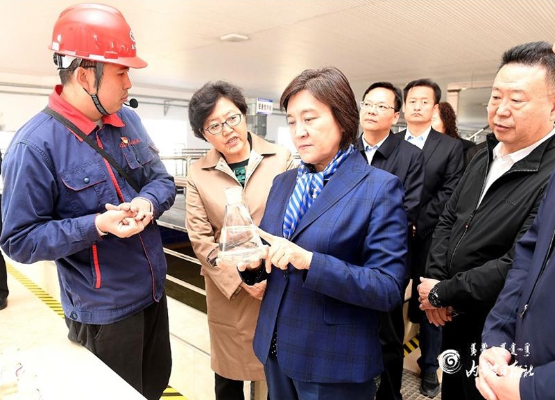 布小林十分關(guān)心沿黃地區(qū)的水資源節(jié)約集約高效利用和生態(tài)保護建設。她來到烏海市綠色生態(tài)農(nóng)業(yè)產(chǎn)業(yè)園,走進綠農(nóng)永勝農(nóng)民專業(yè)合作社陽光大棚葡萄基地,詳細了解葡萄種植需水和高效節(jié)水設施的使用情況;在烏海市啟源供水有限公司,實地查看凈水工藝流程及針對黃河水特點采取的處理措施。布小林指出,我區(qū)沿黃地區(qū)大多水資源匱乏,生態(tài)保護和經(jīng)濟社會發(fā)展面臨水資源短缺的剛性約束。抓好水資源節(jié)約集約高效利用,是推進黃河流域生態(tài)保護和高質(zhì)量發(fā)展的重中之重。要牢固樹立節(jié)水意識,堅持以水定城、以水定地、以水定人、以水定產(chǎn),合理規(guī)劃人口、城市和產(chǎn)業(yè)發(fā)展,大力發(fā)展節(jié)水產(chǎn)業(yè)和技術(shù),實施全社會節(jié)水行動,推動用水方式由粗放向節(jié)約集約轉(zhuǎn)變。要大力發(fā)展循環(huán)經(jīng)濟,結(jié)合技術(shù)改造和產(chǎn)品更新?lián)Q代,組織實施重大節(jié)水和水循環(huán)利用示范工程,提高水資源重復利用率。