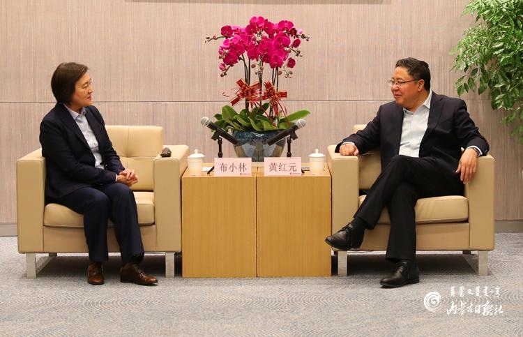 12月2日上午,自治區(qū)黨委副書記、自治區(qū)主席布小林與上海證券交易所黨委書記、理事長(zhǎng)黃紅元在上海舉行會(huì)談。