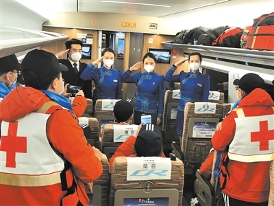 作為連通全國(guó)的運(yùn)輸動(dòng)脈,在完成常規(guī)運(yùn)輸任務(wù)的基礎(chǔ)上,高鐵列車還承擔(dān)起了運(yùn)送醫(yī)務(wù)人員、醫(yī)療用品和保障物資的特別任務(wù)。內(nèi)蒙古援鄂醫(yī)療隊(duì)員兩批次乘坐G2438次列車從北京中轉(zhuǎn)赴武漢;五批次乘坐“草原動(dòng)車”由鄂爾多斯回到呼和浩特。“送英雄出征,接英雄回家”,七次運(yùn)輸任務(wù),高鐵車隊(duì)以最高禮遇和精心的服務(wù),贏得醫(yī)療隊(duì)員們的紛紛好評(píng)?!爸x謝你們,出發(fā)時(shí)為我們送行,歸來(lái)時(shí)為我們唱起凱旋之歌?!贬t(yī)療隊(duì)隊(duì)員李紅娟緊緊握住列車長(zhǎng)張雨的手說(shuō)。