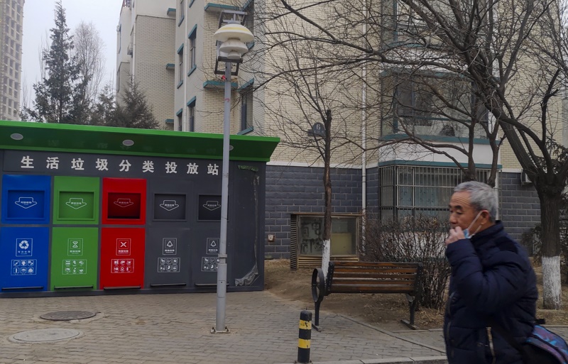 1月20日,呼和浩特市一名居民在政府投放進小區(qū)的生活垃圾分類投放站前走過。呼和浩特市是自治區(qū)唯一入選的全國首批實施生活垃圾強制分類的46個重點城市之一。根據要求,2019年底,全市公共機構和中小學幼兒園全部推行垃圾分類,到2020年底,垃圾回收利用率將達到35%以上。分布在全市各小區(qū)的可回收垃圾智能分類箱依托移動互聯網、大數據、物聯網等方式,通過信息化手段,從垃圾分類宣傳、投遞、收集、處理等方面著手,對垃圾分類各個環(huán)節(jié)進行智能化管理,以積分激勵的形式逐步培養(yǎng)轄區(qū)居民垃圾分類的好習慣。