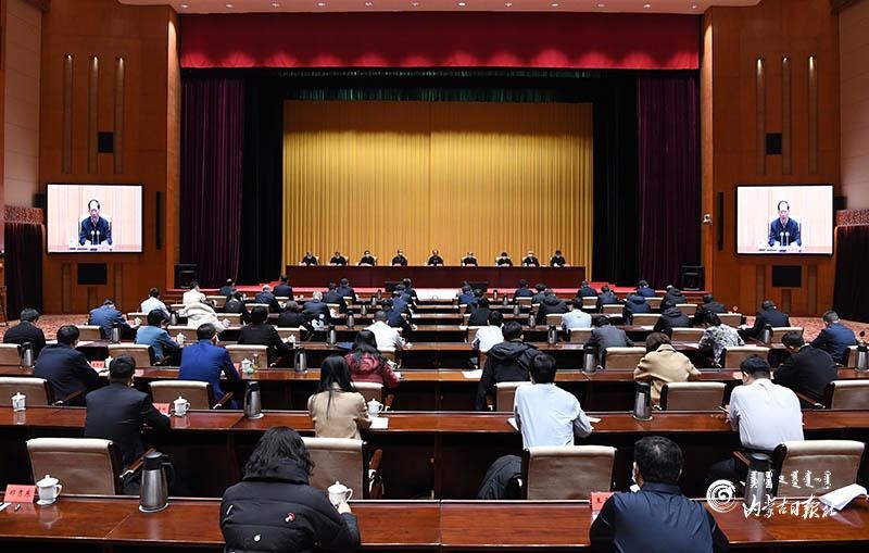 2月8日上午,自治區(qū)黨委常委、組織部長楊偉東主持會(huì)議。內(nèi)蒙古日報(bào)記者 袁永紅 攝