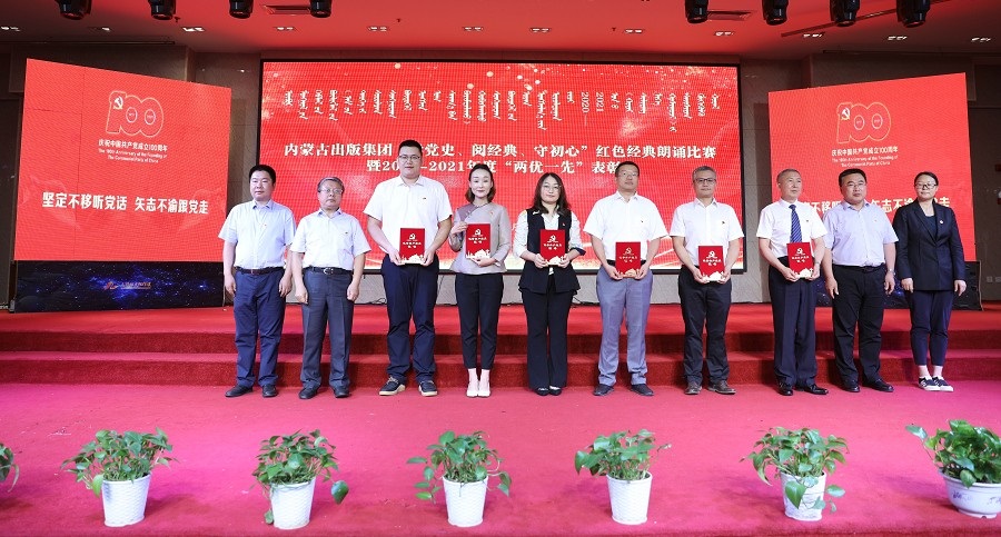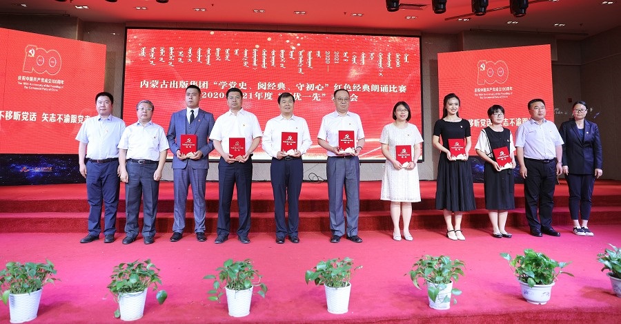 6月26日,內(nèi)蒙古出版集團(tuán)在維力斯大酒店舉辦“學(xué)黨史、閱經(jīng)典、守初心”紅色經(jīng)典朗誦比賽暨2020—2021年度“兩優(yōu)一先”表彰大會(huì)。內(nèi)蒙古出版集團(tuán)黨委書記、董事長雙龍,黨委副書記王富,黨委委員、副總經(jīng)理扎拉根,副總經(jīng)理王曉玲,總編輯助理黃滔,總經(jīng)理助理白玉峰等領(lǐng)導(dǎo)出席會(huì)議。