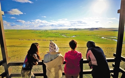 “秋天的草原更令人迷醉。絲絲涼風,清爽宜人,湛藍天空,明靜高遠,柔美蜿蜒的莫日格勒河,悠然自得的牧馬生活,最讓我難忘的是呼倫貝爾的綠。”大連的王女士帶著父母和孩子自駕游呼倫貝爾,從森林到草原,一路尋綠穿行。