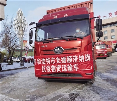 鑒于額濟納旗疫情防控任務依然艱巨、醫(yī)療物資用量仍然很大,呼和浩特市新冠病毒疫情聯(lián)防聯(lián)控暨新冠病毒疫情防控工作指揮部決定立即捐贈第一批價值300萬元的防疫物資。在呼和浩特市新冠病毒疫情聯(lián)防聯(lián)控暨新冠病毒疫情防控工作指揮部的統(tǒng)籌部署下,指揮部物資保障組成員單位市財政局、發(fā)改委、衛(wèi)健委、商務局、交通局、紅十字會全力以赴、齊心協(xié)力,愛心企業(yè)、金融機構積極捐贈,呼和浩特警備區(qū)傾力相助,讓愛心“大禮包”如期發(fā)貨。在發(fā)車現(xiàn)場,中國銀行股份有限公司內(nèi)蒙古自治區(qū)分行辦公室主任葛華表示,面對疫情,中國銀行內(nèi)蒙古分行支援抗疫責無旁貸,重任在肩必須挺身,義無反顧地與全區(qū)人民站在一起,守望相助、同心戰(zhàn)“疫”、共克時艱,在積極做好疫情防控和金融服務的同時,主動擔當責任,通過紅十字會向呼和浩特市、阿拉善盟、二連浩特市捐款近百萬元,為地方開展疫情防控盡一份綿薄之力。金宇生物技術股份有限公司黨委副書記張占福告訴記者:“疫情無情,人間有愛。作為動物疫苗生產(chǎn)企業(yè),能為我區(qū)抗擊疫情出一份力,奉獻一份愛,是企業(yè)應盡的社會責任和義務?!痹诠部挂咔榈年P鍵時刻,內(nèi)蒙古顯鴻科技股份有限公司積極響應市政府號召,在做好企業(yè)疫情防控的同時,第一時間組織抗疫物資,用實際行動踐行顯鴻科技“愛黨、愛國、愛企、愛家”情懷。短短幾天時間內(nèi),伊利、蒙牛、盛健、華訊等18家企業(yè)進行愛心捐贈,大家同心同德、同向同行,堅決助力自治區(qū)打贏這場疫情防控阻擊戰(zhàn)。