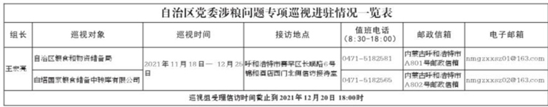 根據(jù)自治區(qū)黨委關(guān)于巡視工作統(tǒng)一安排,本輪巡視對(duì)自治區(qū)糧食和物資儲(chǔ)備局黨組、內(nèi)蒙古白塔國(guó)家糧食儲(chǔ)備中轉(zhuǎn)庫(kù)有限公司開(kāi)展涉糧問(wèn)題專(zhuān)項(xiàng)巡視。
