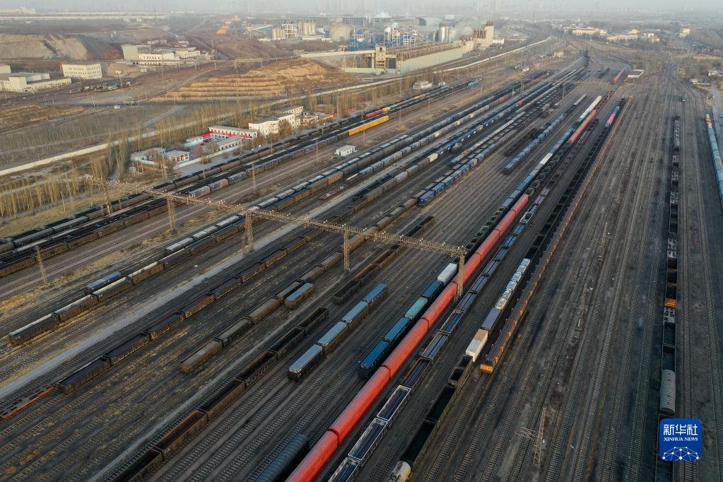 這是11月23日拍攝的中鐵呼和浩特局包頭西站(無人機(jī)照片)。作為西北地區(qū)重要的鐵路編組站,包頭西站每天的煤炭運(yùn)輸量可達(dá)3萬噸以上。新華社記者朱文哲攝
