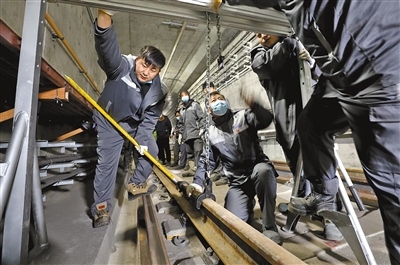 “我們的日常工作主要是對地鐵軌道線路進行周期性檢查和計劃性維修,確保地鐵軌道設(shè)備狀態(tài)良好,保證電客車在線路上安全、平穩(wěn)、不間斷運行?!碧镏呛陮τ浾哒f:“維修對象主要是鋼軌和道岔,通過我們的起、撥、改等作業(yè),使得軌道幾何形位保持在標準值范圍內(nèi)。”
