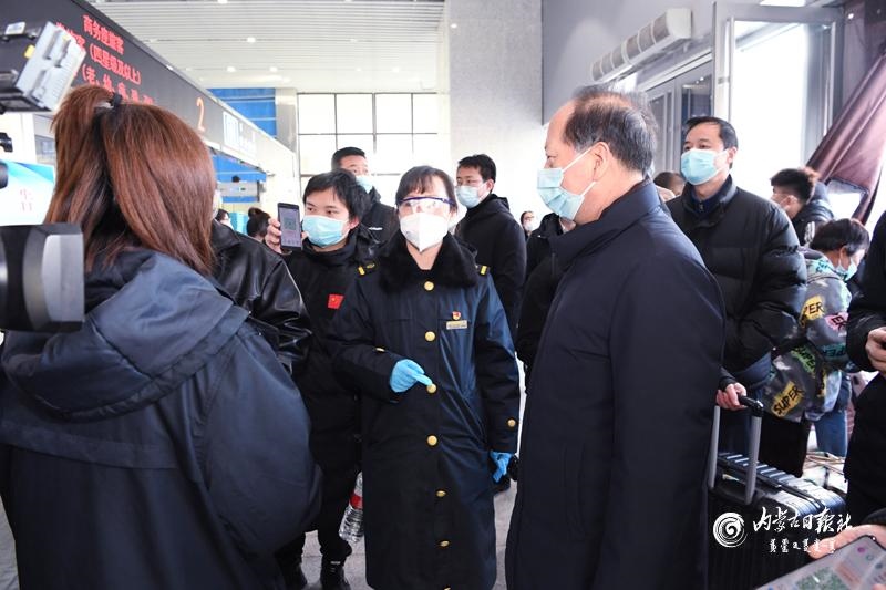 節(jié)假日期間人員流動(dòng)增加,做好疫情防控和交通出行保障非常重要。石泰峰來(lái)到呼和浩特火車(chē)站、長(zhǎng)途汽車(chē)站,看望慰問(wèn)一線工作人員,實(shí)地了解各項(xiàng)措施落實(shí)情況。通過(guò)車(chē)站自助驗(yàn)證通道后,石泰峰首先來(lái)到售票處,詢問(wèn)旅客購(gòu)票和出行情況,叮囑車(chē)站工作人員在節(jié)假日期間要實(shí)行網(wǎng)上預(yù)約購(gòu)票,避免人員聚集。在進(jìn)站口,石泰峰看到旅客掃碼后還需人工查驗(yàn)結(jié)果,他強(qiáng)調(diào),要優(yōu)化售票檢票等服務(wù)流程,充分運(yùn)用技術(shù)手段改進(jìn)旅客進(jìn)站檢查方式,切實(shí)堵塞工作漏洞。要嚴(yán)謹(jǐn)細(xì)致做好進(jìn)站測(cè)溫、驗(yàn)碼等防疫檢查,嚴(yán)格控制、科學(xué)調(diào)節(jié)客流量。要加強(qiáng)規(guī)范佩戴口罩、保持安全距離等防范措施提醒,引導(dǎo)旅客做好個(gè)人防護(hù)。在汽車(chē)站停車(chē)場(chǎng),石泰峰與司乘人員交談,深入了解車(chē)輛消殺、信息登記等情況。隨后,他乘坐地鐵2號(hào)線,調(diào)研疫情防控和市民出行情況。他強(qiáng)調(diào),要嚴(yán)格落實(shí)常態(tài)化交通運(yùn)輸疫情防控要求,認(rèn)真落實(shí)客運(yùn)場(chǎng)站和交通運(yùn)輸工具消毒通風(fēng)、設(shè)置隔離區(qū)等措施,加強(qiáng)客運(yùn)一線服務(wù)人員日常健康監(jiān)測(cè)和定期核酸檢測(cè),制定應(yīng)急預(yù)案,完善相關(guān)設(shè)施,讓群眾出行更加安全順暢舒心。