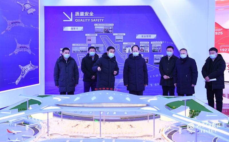 1月18日下午,自治區(qū)黨委書記、人大常委會(huì)主任石泰峰在呼和浩特新機(jī)場(chǎng)智慧展廳,聽取新機(jī)場(chǎng)主體建設(shè)情況介紹。內(nèi)蒙古日?qǐng)?bào)社融媒體記者 袁永紅 攝