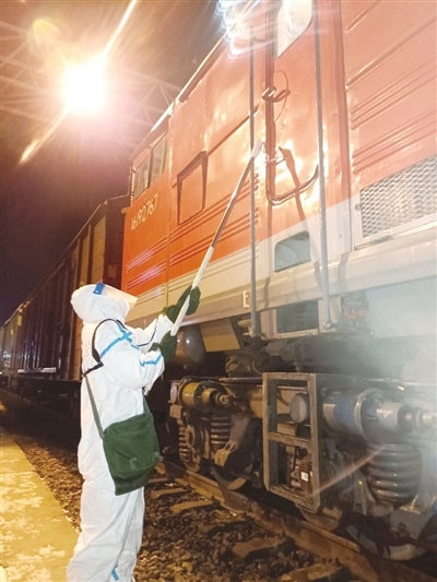 田潤澤告訴記者,“通過‘無接觸’查驗、磁條封控車門,避免了跨境列車司機與邊檢、海關工作人員的直接接觸,最大限度降低交叉感染的風險,確保司機在國內(nèi)停留的數(shù)小時內(nèi)不下車、不與外界接觸?!?/p>