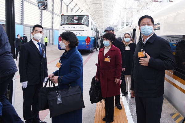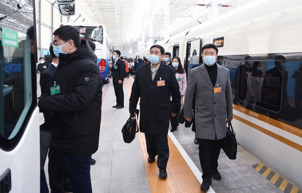 肩負(fù)神圣使命,牢記人民重托。3月3日,出席十三屆全國(guó)人大五次會(huì)議的內(nèi)蒙古代表團(tuán)從呼和浩特出發(fā),乘坐高鐵抵達(dá)北京,向大會(huì)報(bào)到。