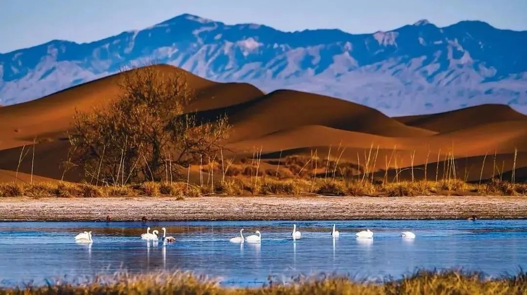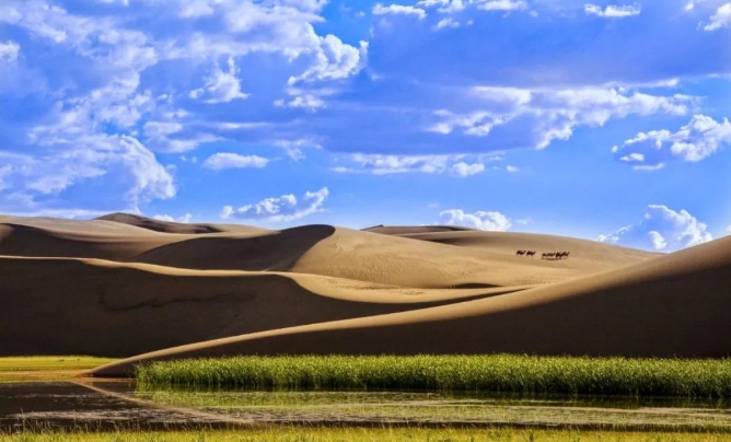 巴丹吉林沙漠年降水量不足40毫米,但是沙漠中的湖泊竟然多達(dá)100多個(gè)。高聳入云的沙山,神秘莫測(cè)的鳴沙,靜謐的湖泊、濕地,構(gòu)成了巴丹吉林沙漠獨(dú)特的迷人景觀,于2005年被《中國國家地理》雜志評(píng)為中國最美麗的沙漠,每年吸引了上萬名國內(nèi)外游客前來觀光。
