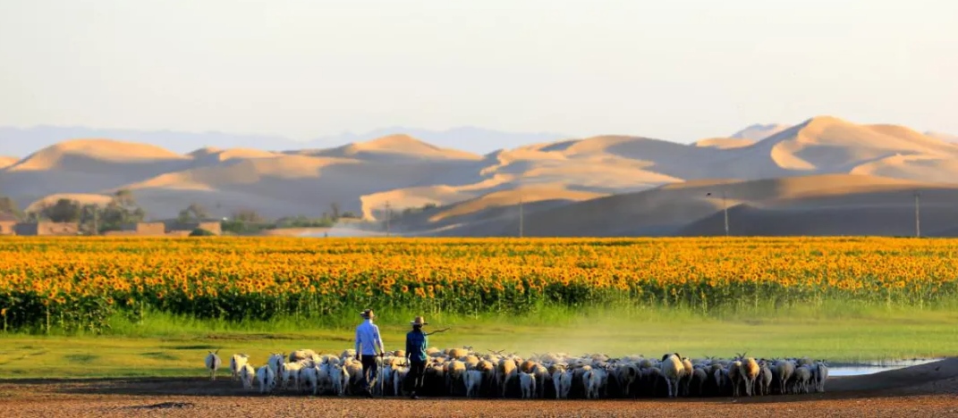 烏蘭布和沙區(qū)主要發(fā)展肉蓯蓉、釀酒葡萄、現(xiàn)代牧業(yè)、沙漠生態(tài)旅游、光伏發(fā)電五大產(chǎn)業(yè),治沙、致富兼顧,大力發(fā)展經(jīng)濟(jì)林產(chǎn)業(yè),累計(jì)在烏蘭布和沙漠種植梭梭35萬畝,接種肉蓯蓉10萬畝,“借光治沙”,實(shí)現(xiàn)光伏產(chǎn)業(yè)、生態(tài)治理與脫貧攻堅(jiān)互融共贏。