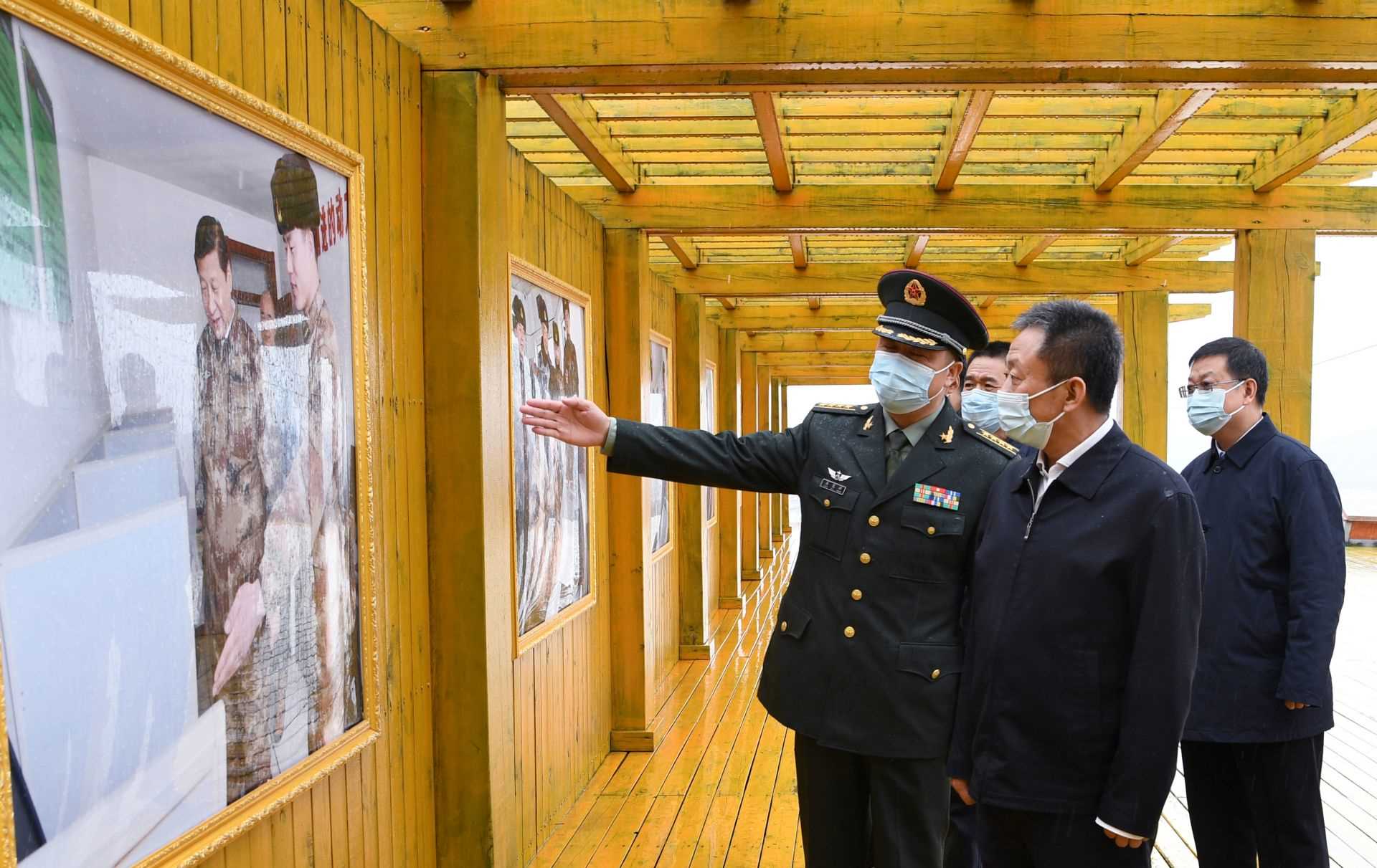 5月5日,自治區(qū)黨委書記孫紹騁參觀習(xí)近平總書記慰問情景再現(xiàn)長廊。記者袁永紅攝
