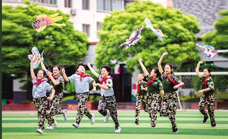 呼和浩特市玉泉區(qū)五塔寺東街小學學生放飛彩繪風箏。內(nèi)蒙古日報社融媒體記者王磊攝