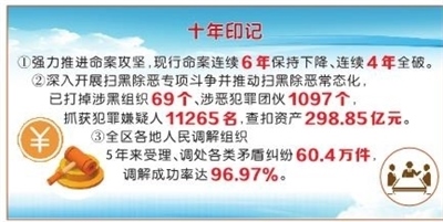 深入開展掃黑除惡專項斗爭并推動掃黑除惡常態(tài)化,2018年以來,已打掉涉黑組織69個、涉惡犯罪團(tuán)伙1097個,抓獲犯罪嫌疑人11265名,查扣資產(chǎn)298.85億元。