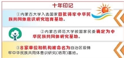 2020年2月,內(nèi)蒙古大學(xué)入選國(guó)家首批鑄牢中華民族共同體意識(shí)研究培育基地;2021年3月,內(nèi)蒙古師范大學(xué)被國(guó)家民委確定為中華民族共同體研究基地;2021年8月,8家單位和機(jī)構(gòu)被命名為自治區(qū)級(jí)鑄牢中華民族共同體意識(shí)研究(培育)基地……內(nèi)蒙古不斷加強(qiáng)中華民族共同體重大基礎(chǔ)性問(wèn)題研究,持續(xù)推動(dòng)鑄牢中華民族共同體意識(shí)與經(jīng)濟(jì)發(fā)展、鄉(xiāng)村振興、生態(tài)保護(hù)、基層治理等有機(jī)結(jié)合,深度融合。