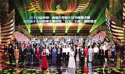 8月31日晚,第十九屆中國(guó)·內(nèi)蒙古草原文化節(jié)閉幕式暨全區(qū)第十五屆精神文明建設(shè)“五個(gè)一工程”頒獎(jiǎng)儀式在內(nèi)蒙古藝術(shù)劇院舉行。