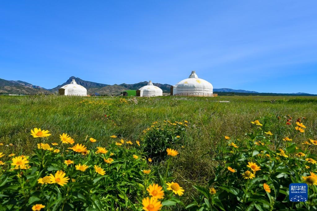 初秋的敕勒川草原,花香、草香撲面而來(lái),綠草之間泛著淡淡鵝黃,與白、紅、紫等各色小花繪成一幅層次鮮明的風(fēng)景畫。