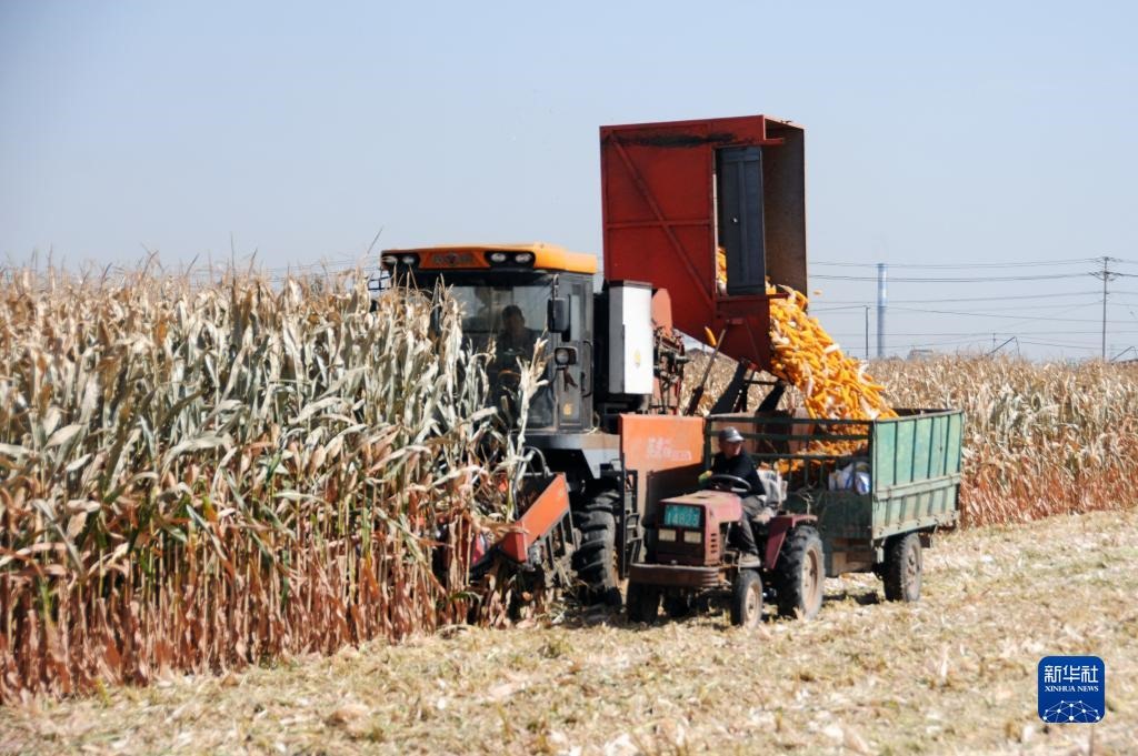 臨河區(qū)干召?gòu)R鎮(zhèn)黃濟(jì)村村民收割玉米。(新華社記者李云平 攝)