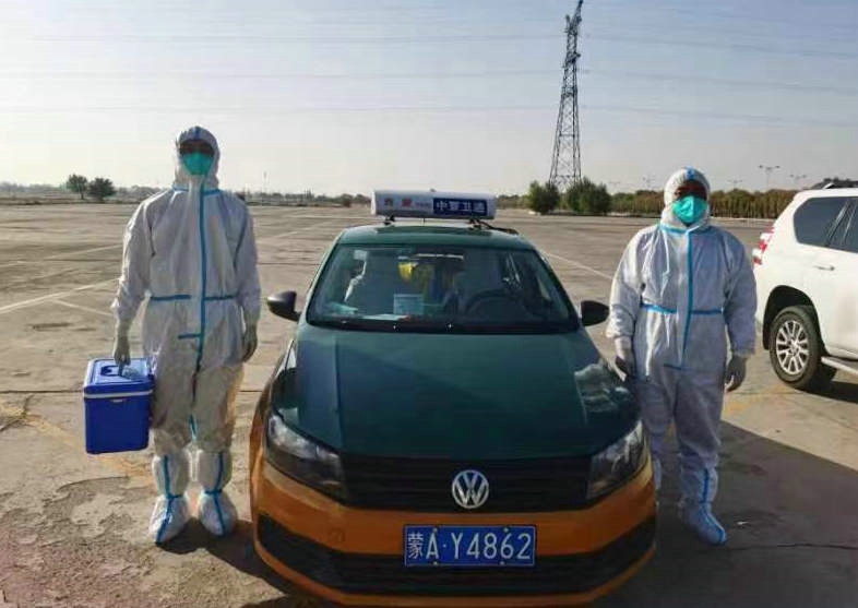 和轉(zhuǎn)運員一起轉(zhuǎn)運樣本(圖片由受訪者提供)