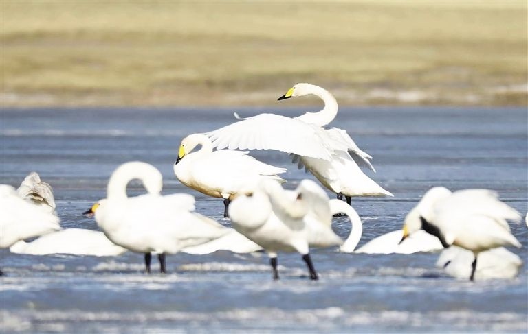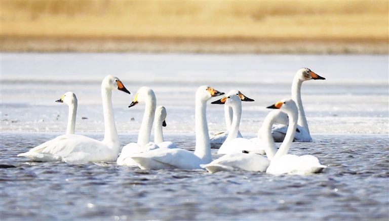 晶晶忍不住感嘆:“我和盈盈每次南飛或北遷,都要在沉湖‘打卡’,這個(gè)城市濕地已變成了小天鵝的‘會(huì)客廳’。前些年,這里可不好玩,用人類的話說,它‘曾經(jīng)滿目瘡痍,如今萬鳥翔集、水草豐美’?!?/p>