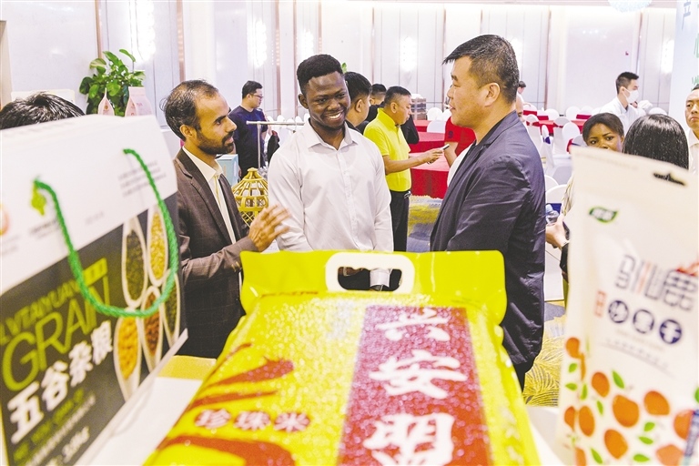 4月12日,第三屆中國國際消費品博覽會國外參展商詳細了解內蒙古興安盟綠色有機農畜產品。消博會期間,“內蒙古·興安盟投資貿易”推介會在海南省海口市舉行。推介會現場促成參會企業(yè)簽約項目9個,預計合作投資額近12億元。作為國家重要的農畜產品生產基地,來自內蒙古的優(yōu)勢特色農畜產品正走出中國賣向全球。(內蒙古日報社融媒體記者 王曉博 攝)