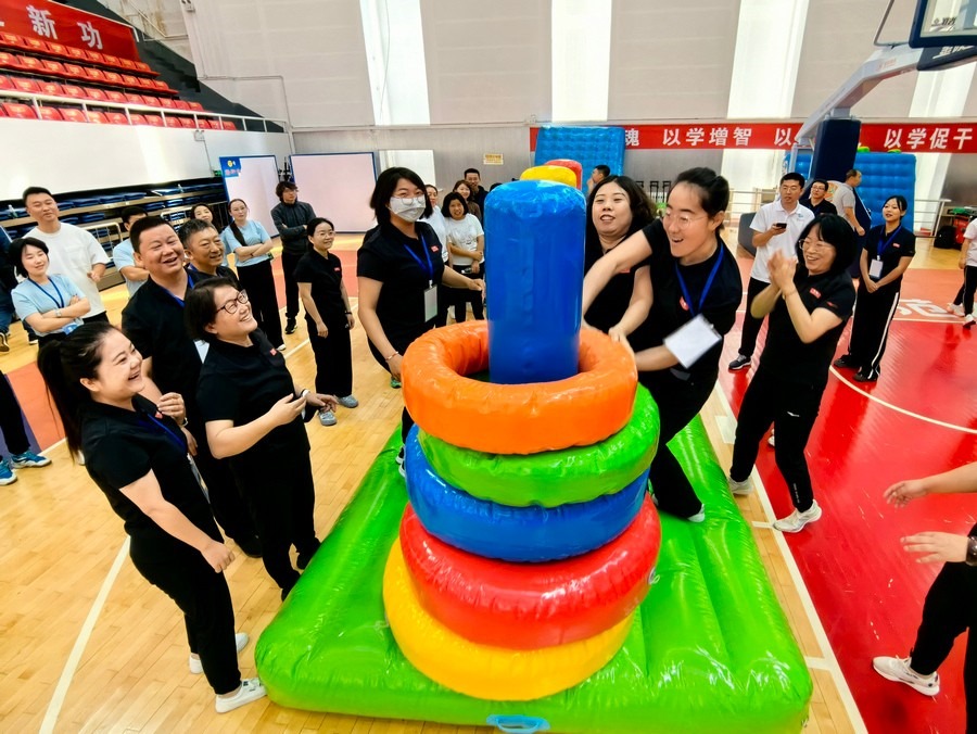 在隨后進(jìn)行的趣味運(yùn)動(dòng)會(huì)中,依次進(jìn)行了“陸地冰壺”“龜兔賽跑”“漢諾塔”等比賽項(xiàng)目。而在此前一天,羽毛球等項(xiàng)目也已開賽。賽場(chǎng)上,運(yùn)動(dòng)員們團(tuán)結(jié)一心,奮力拼搏。觀眾席上,“最強(qiáng)氣氛組”組成強(qiáng)大的啦啦隊(duì),為參賽選手們吶喊助威、加油鼓勁,共同凝聚團(tuán)隊(duì)的精神,一起分享比賽的快樂。