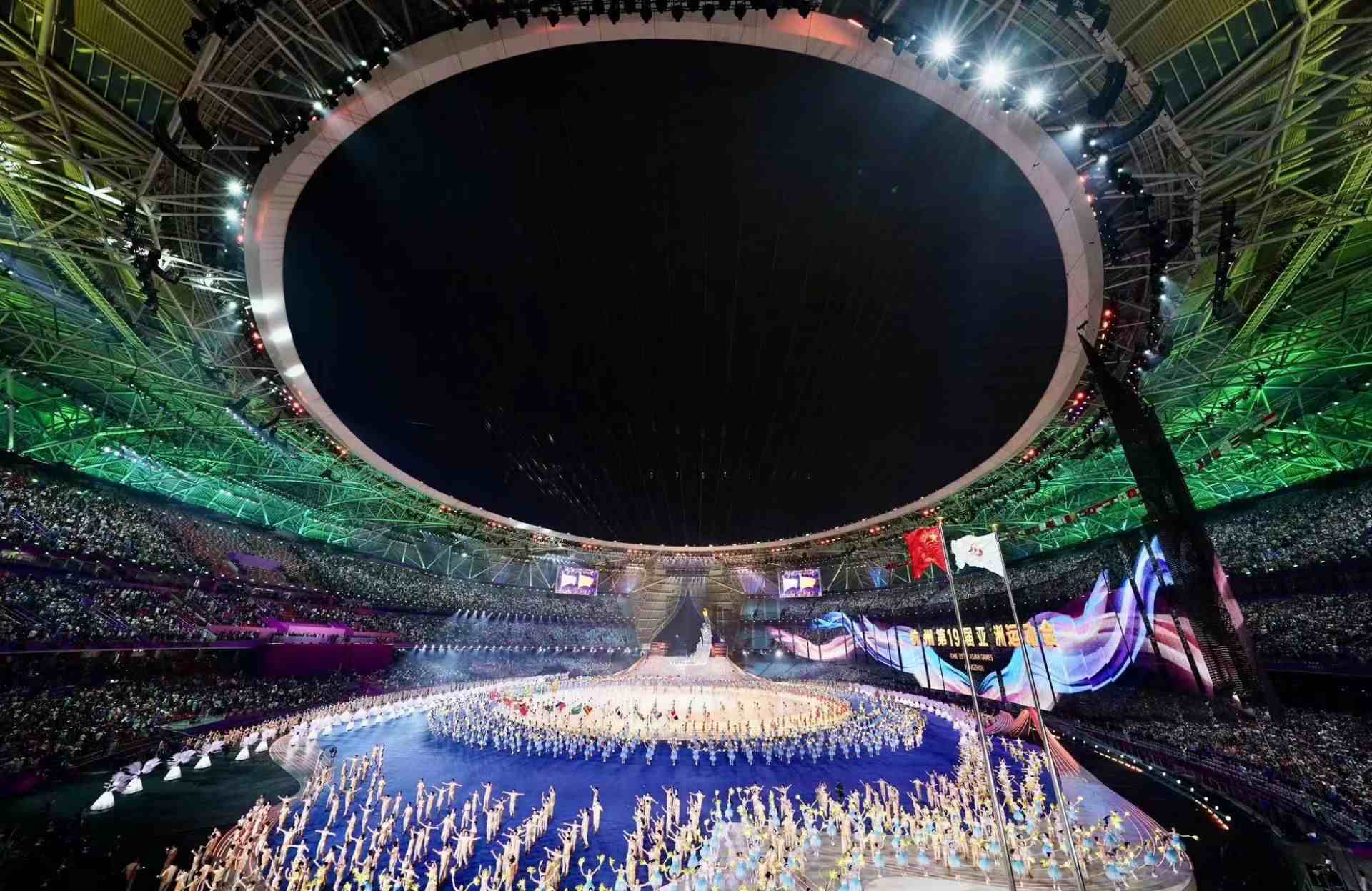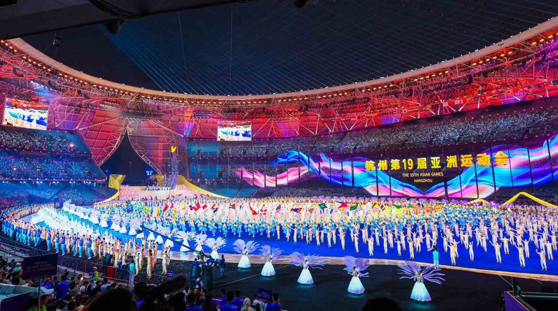 開幕式文藝表演以“潮起亞細(xì)亞”為總主題,分為《國風(fēng)雅韻》《錢塘潮涌》《攜手同行》三大篇章,寓意著新時(shí)代的中國正與亞洲、世界交融激蕩,像浪潮一樣奔涌向前。開幕式首次將3D雙威亞技術(shù)應(yīng)用于大型運(yùn)動(dòng)場中,首次實(shí)現(xiàn)“數(shù)實(shí)融合”點(diǎn)火儀會(huì)開幕式在浙江省杭州市隆重舉行。開幕式文藝表演以“潮起亞細(xì)亞”為總主題,分為《國風(fēng)雅韻》《錢塘潮涌》《攜手同行》三大篇章,寓意著新時(shí)代的中國正與亞洲、世界交融激蕩,像浪潮一樣奔涌向前。開幕式首次將3D雙威亞技術(shù)應(yīng)用于大型運(yùn)動(dòng)場中,首次實(shí)現(xiàn)“數(shù)實(shí)融合”點(diǎn)火儀式。本次亞運(yùn)會(huì)有來自亞洲45個(gè)國家和地區(qū)代表團(tuán)的1.2萬多名運(yùn)動(dòng)員報(bào)名參賽,共設(shè)40個(gè)大項(xiàng)、61個(gè)分項(xiàng)、481個(gè)小項(xiàng),是史上規(guī)模最大、項(xiàng)目最多、覆蓋面最廣的一屆亞運(yùn)會(huì)。