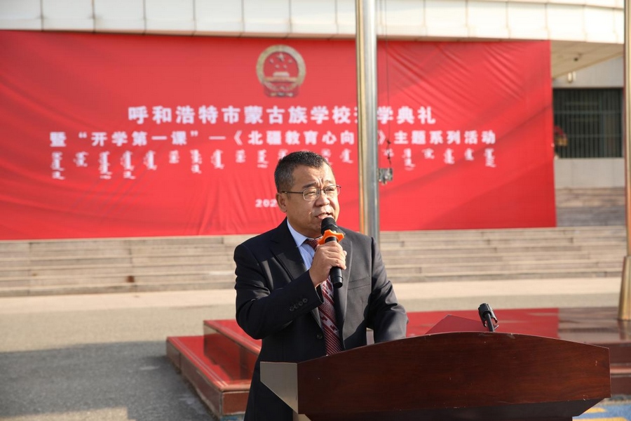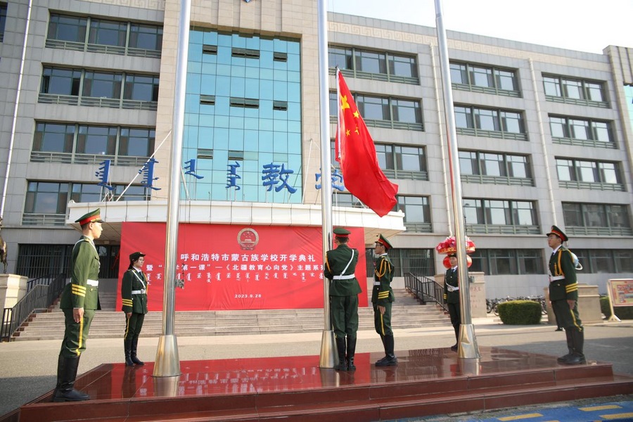 呼和浩特市蒙古族學(xué)校開展了主題為“北疆教育心向黨”開學(xué)第一課系列活動(dòng)。全校2900多名師生參加。102名黨員、干部重溫入黨誓詞,在黨旗下再次接受革命精神的凈化和洗禮。同時(shí),各班級(jí)開展了“青春踐行黨的二十大”為主題的班會(huì)活動(dòng),各班班主任結(jié)合專業(yè)特色和學(xué)生實(shí)際,叮囑學(xué)生要提高思想政治素質(zhì),堅(jiān)定理想信念,助力學(xué)生成長(zhǎng)成才。