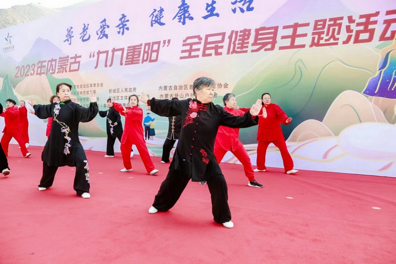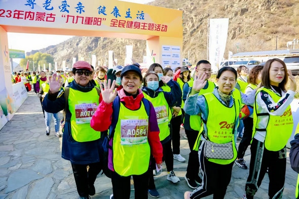 當(dāng)日,由內(nèi)蒙古自治區(qū)體育總會主辦、呼和浩特市體育局承辦的2023年內(nèi)蒙古“九九重陽”全民健身主題活動在國家登山健身步道舉行。現(xiàn)場設(shè)置了3公里登高健身活動和全民健身展演等活動。