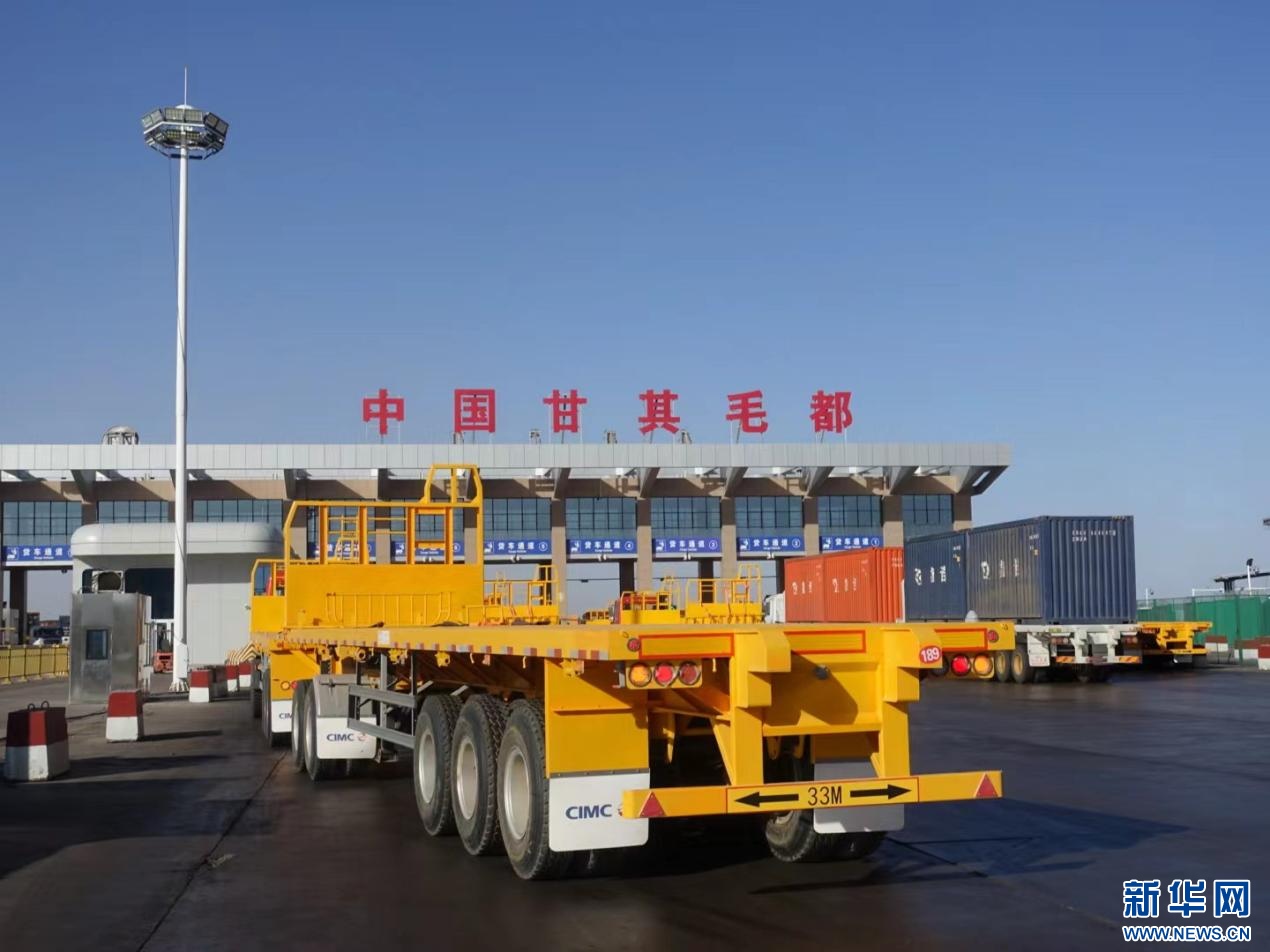 大卡車駛過珠恩嘎達(dá)布其口岸。資料圖 ??
