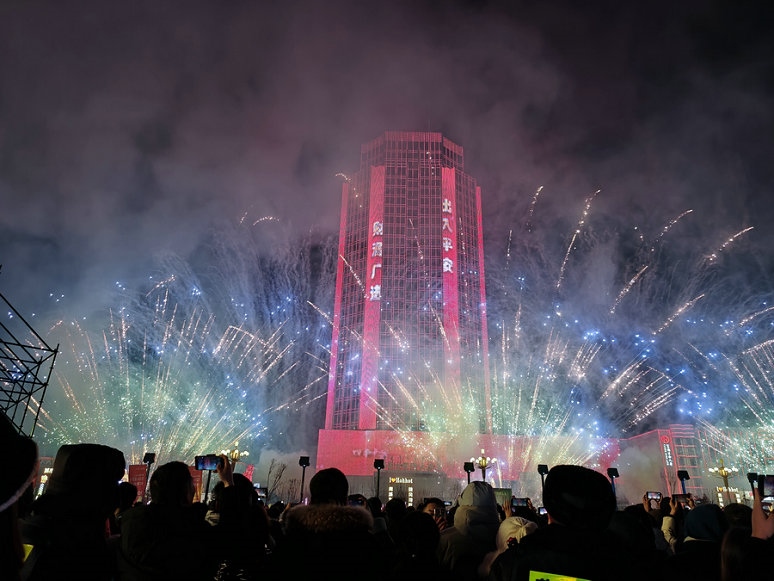 呼和浩特市新華廣場(chǎng)跨年夜煙花秀 記者李文華 攝影