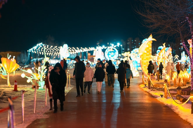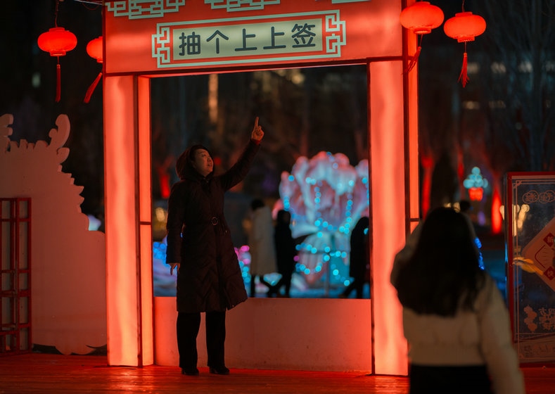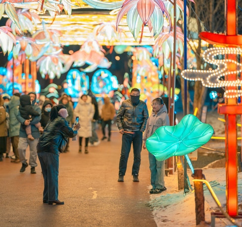 呼和浩特市民曹女士說:“今年49歲,正好本命年,已經(jīng)拍了很多照片和視頻了,這些龍的造型很喜人,更賞心悅目,家就住附近,沒事就來逛一逛,心情都會(huì)變得更好了,還能和孩子一起學(xué)習(xí)生僻字,了解中國傳統(tǒng)文化,很期待正月十五的燈謎,到時(shí)候還會(huì)來,和孩子一起猜燈謎、長知識(shí)。”