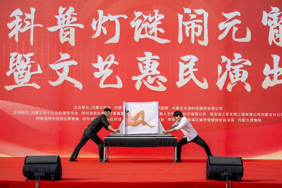 當(dāng)日(正月十四),內(nèi)蒙古科協(xié)等單位在寶鼎廣場舉辦了科普燈謎鬧元宵暨文藝惠民演出活動。