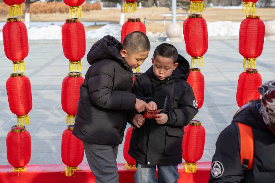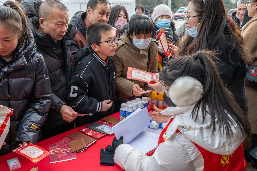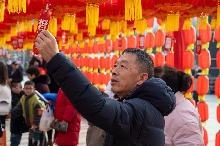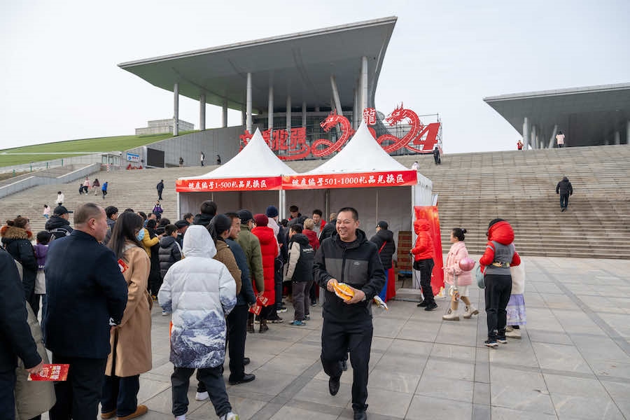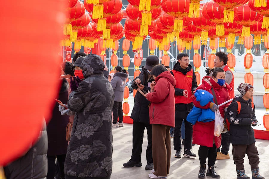 2月23日下午,在內(nèi)蒙古呼和浩特寶鼎廣場,市民游客拿著燈謎卡來到禮品兌換區(qū),興奮不已地排隊等待著。