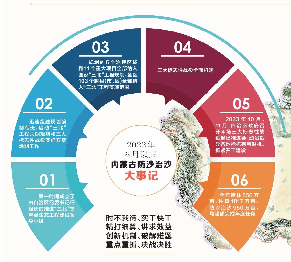 猶記得2023年的6月,習(xí)近平總書記親臨內(nèi)蒙古考察,主持召開了加強(qiáng)荒漠化綜合防治和推進(jìn)“三北”等重點(diǎn)生態(tài)工程建設(shè)座談會,發(fā)出堅決打好“三北”工程攻堅戰(zhàn)、努力創(chuàng)造新時代中國防沙治沙新奇跡的動員令,并親自部署了“三北”工程三大標(biāo)志性戰(zhàn)役。
