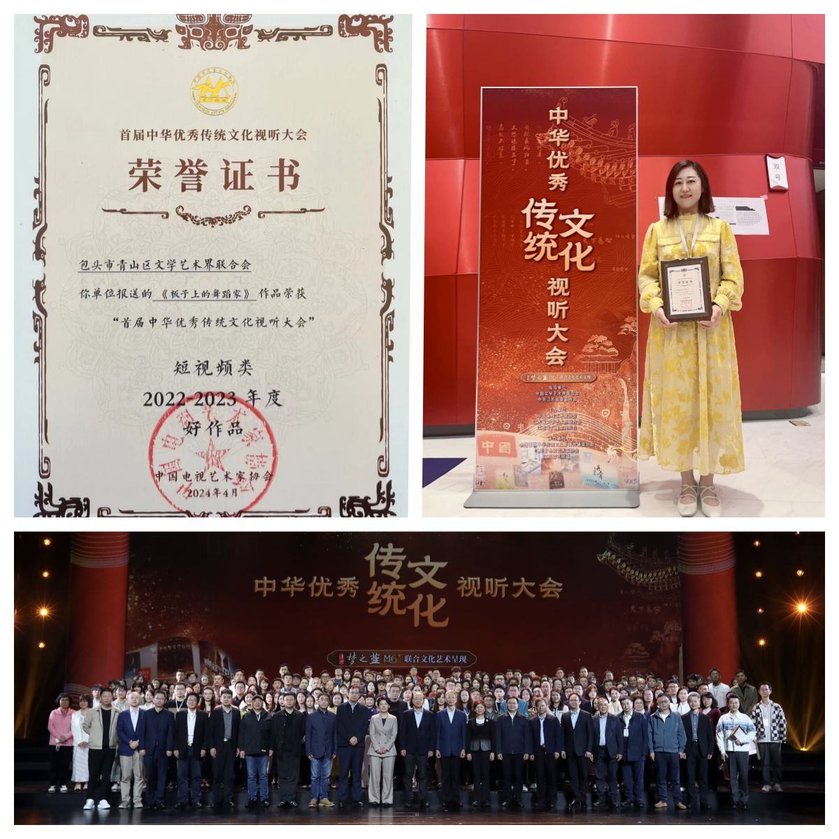 近日,在第十四屆北京國際電影節(jié)上,由內(nèi)蒙古電視藝術(shù)家協(xié)會力推的數(shù)字電影《尋覓古如歌》榮獲2023公益電影單元2023年度文旅融合影像創(chuàng)新特別獎(本領(lǐng)域最高獎項),紀錄短片《姥爺?shù)暮J刻》榮獲三等獎。內(nèi)蒙古電視藝術(shù)家協(xié)會青年和新文藝群體專業(yè)委員會副主任趙金波榮獲“青年創(chuàng)作榜樣導(dǎo)師”稱號。在中國電視藝術(shù)家協(xié)會主辦的首屆中華優(yōu)秀傳統(tǒng)文化視聽大會上,由包頭青山區(qū)文聯(lián)、內(nèi)蒙古電視藝術(shù)家協(xié)會推薦的短視頻《板子上的舞蹈家》榮獲短視頻類好作品獎。成績來之不易,這是內(nèi)蒙古電視藝術(shù)家協(xié)會長期聚焦“做人的工作”,強化行業(yè)服務(wù)、行業(yè)管理、行業(yè)自律、充分發(fā)揮行業(yè)建設(shè)主導(dǎo)作用所產(chǎn)生的工作成果!希望全區(qū)電視藝術(shù)和網(wǎng)絡(luò)視聽工作者不斷磨練自身功夫、再接再厲,再創(chuàng)佳績!