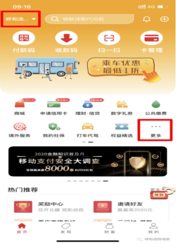 將云閃付APP定位到“呼和浩特”