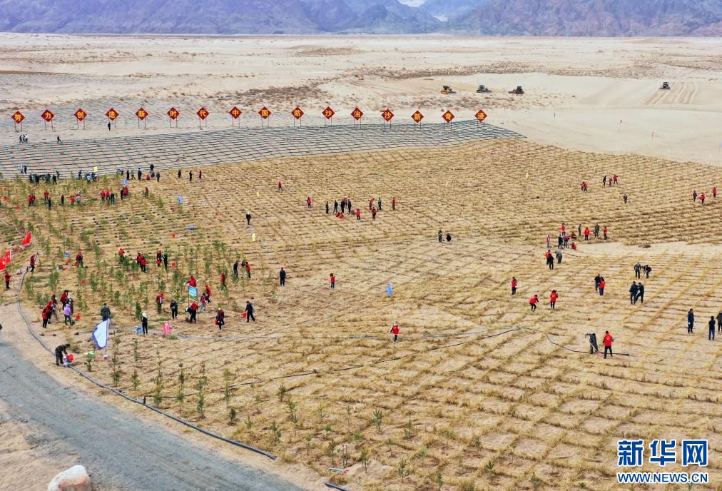 內(nèi)蒙古黃河“幾字彎”地區(qū)開展植樹造林工作。新華社記者李云平 攝