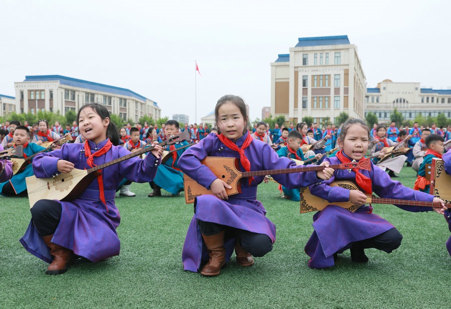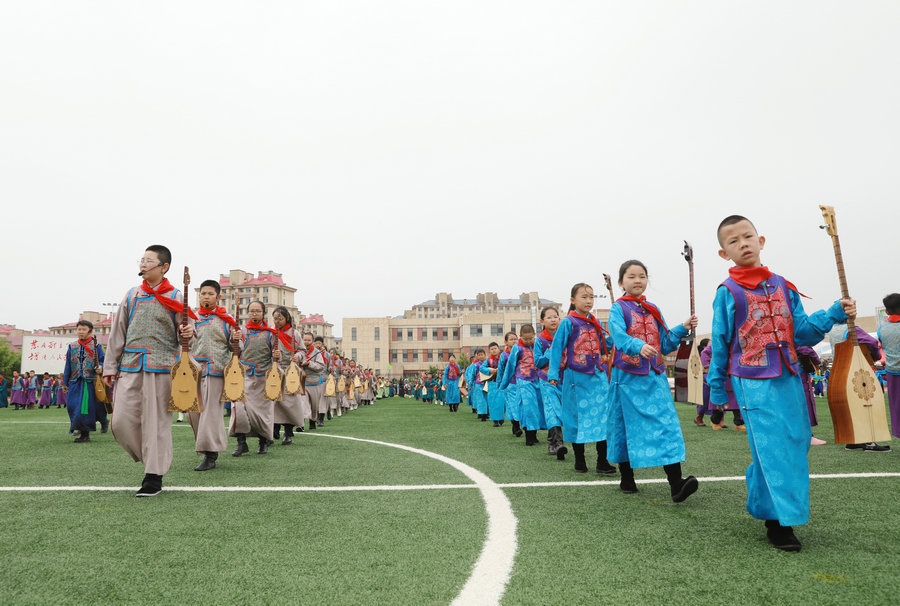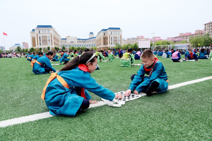 “今天參加4個(gè)‘千人文化’特色課程感到非常高興和開心。這4個(gè)課程讓我們的文化素養(yǎng)得到質(zhì)的提升,愉悅了身心?!蔽迥昙?jí)125班的哈斯寶勒爾剛剛參加完特色課程展示。哈斯寶勒爾表示,這4個(gè)課程,比如玩象棋的話,可以提升自己的思維邏輯,讓自己的思路更加清晰,能夠提升學(xué)習(xí)成績(jī);練習(xí)筷子舞,可以讓我們的心情變得更加愉悅,通過(guò)練習(xí)跳舞,讓我們身體的柔韌性更強(qiáng);唱江格爾,能鍛煉我們的唱歌能力,還能讓我們把非物質(zhì)文化遺產(chǎn)傳承下去;踢足球可以鍛煉我們的體能。