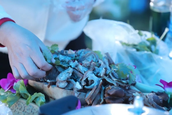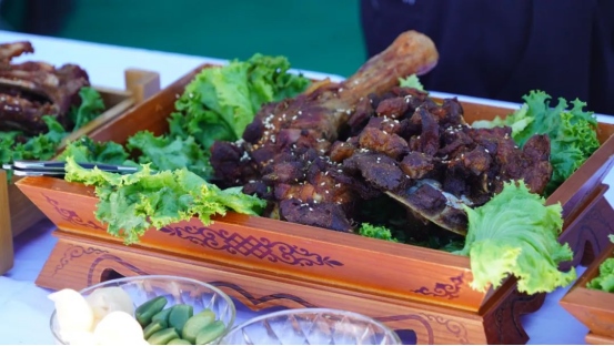 烤全羊、手抓肉、肚包肉……活動現(xiàn)場,參賽選手們各顯神通,用他們精湛的廚藝為大家呈現(xiàn)了一場全羊盛宴。來自不同地區(qū)的36道羊肉系列菜,現(xiàn)場烹飪制作并供嘉賓、游客品嘗,評委從每道菜品的食材、烹飪方法、口味色澤、擺盤設計等方面入手,進行現(xiàn)場打分排名。一道道精心烹飪的美食香飄四座,激發(fā)了現(xiàn)場觀眾的食欲。大家紛紛圍上前來,爭相品嘗?!把蛉膺€有這么多的做法,真是讓人大開眼界。”“太好吃了,羊肉都很鮮美!”現(xiàn)場游客無一不發(fā)出贊嘆?!?/p>